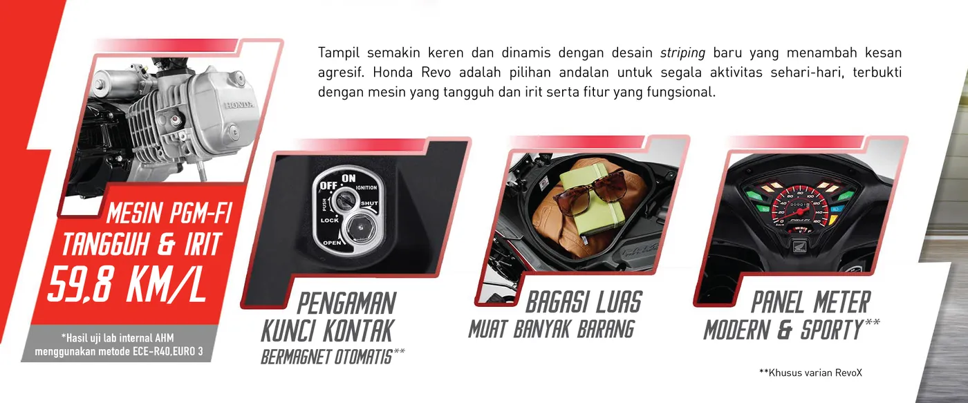 | Sistem Suplai Bahan Bakar | Injeksi/PGM-FI (Programmed Fuel Injection) |