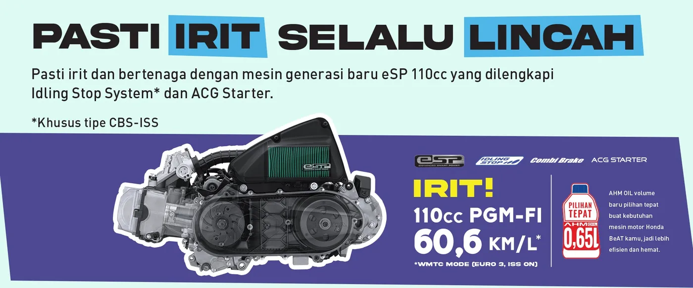 | Tipe Batrai Atau Aki | BeAT MF 12V-3Ah (Tipe CBS) MF 12V-5Ah (Tipe CBS-ISS) |